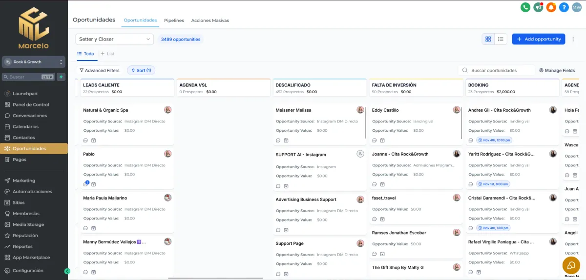 Un lugar para crear tu base de datos y gestionar todo tu negocio sin necesidad de +apps. Desde IA hasta programación de contenido. Solo MarceloCRM.